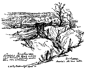 FOR two weeks the Section worked night and day with scarcely time for sleeping and eating, but when our labor slowed up, the men had time to catch up lost sleep. Sleeping quarters were in the loft of a barn between the lane, which was the entrance to the estate, and the chàteau. Due partly to the rainy and damp weather, and the hard work, many of the fellows were on the verge of illness, and at night the loft sounded very much like a consumptive retreat. Every available space was occupied by the sleepers, and a few of the Section found accommodations in a couple of small buildings in the rear of the château, on the edge of the park, a small shack used for storing fishing paraphernalia, and another near by which gave shelter from nothing but the rain and snow. One of the strangest things in that part of the estate was an "Old Town" canoe with a paddle made from a broken airplane propeller which belonged to an aviator from the flying field on the top of the hill. From time to time several of our fellows went canoeing in it on the Meuse which flowed close by.