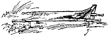 A little after midnight a 'phone call for a car at Esnes came in. We were rather hoping it wouldn't, for it had begun to rain very hard outside, and it was impossible to see your hand before your face. However, we went out and got started. It was n't so terribly hard, though our eyes ached from the strain of constantly trying to see what we could n't possibly see. But we got along up the hill and along the level, passing innumerable artillery teams. It was hard to make out the road here and I was glad when I saw a gleam of light ahead and heard the clink of harness. I thought it was a driver lighting his pipe and steered for the light. In a minute my companion yelled and jumped; and my right wheel dropped down. I had run over a wall at the side of the road and my front axle was resting on the ground and the whole car was so canted that there seemed every chance of its toppling over at any moment. On investigation I found that the light I had seen was by the edge of an artillery caisson which had gone all the way down the bank!