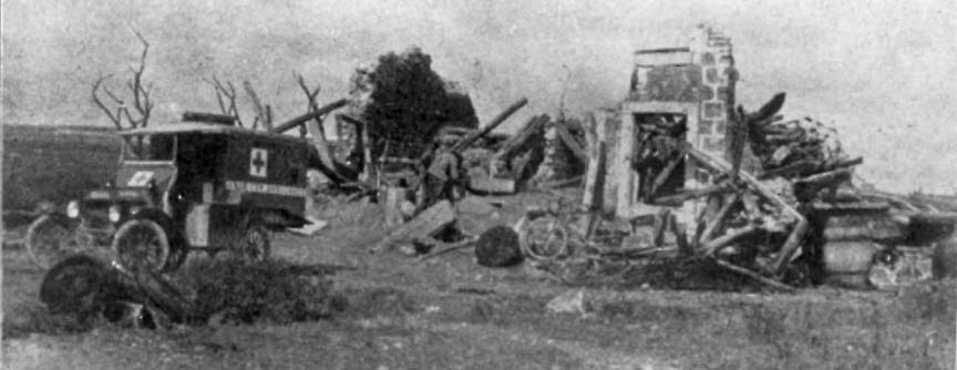 Later, the back of the attack was broken, and we began to get a little rest. But during the first week our cars averaged runs of two hundred miles a day, over roads chewed to pieces, and through very difficult traffic. In several of the villages there were unusually formidable shell gauntlets to be run.