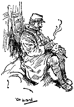 "Yes; Fritz eased in a few shrapnels about 5.30, but did n't hurt any one. You know the last house down on the right-hand side? Well, they smeared that with a shell during the night."
