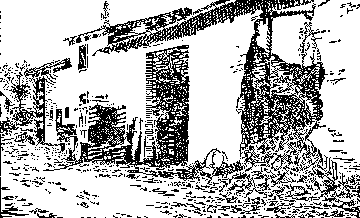 At seven-fifteen, the time set for those on duty to start for the poste, the shells were coming in about every minute. So there was nothing to do but to streak for our cars which were in front of the main building, near which the majority of the shells were landing, and to make as quick a get-away as possible. The "General", and Reed left first and the last we saw of them they were hurrying very ungracefully over the rough field to where the cars were, about 250 yards away. The Lieutenant then told Newcomb and myself to get ready and to leave as soon as the next shell landed. So we lined up as if we were runners waiting for the sound of the starting pistol, and, as soon as the "R-R-ang" came, in we legged it. One shell came in while we were running and we both went down on our bellies. We gained the house before the next one landed and then waited for it. It came in too close for comfort and then I went out and cranked my car while Newcomb ran back to his shack for his coat.