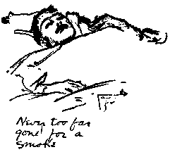 TWELVE of our men were out last night on the Bras service and struck the edge of a gas attack. One of them gave me a cigarette this morning from the case he had carried, but it reeked so of gas that I couldn't smoke it. The air here was tainted with gas all the morning, but whether from the patients or from the occasional shell that struck in the woods above, I could not tell. The gas patients are in a terrible state, those less affected coughing and choking continually; but the others are far beyond that. Two of us took the less desperate cases on to the evacuation camp at Queue-de-Mala; the others went down the hill on stretchers --- uncovered, for treatment --- with blanketed face, for burial. After twelve hours' work and about ten trips apiece, we came in for supper, utterly unrecognizable in our masks of dust.