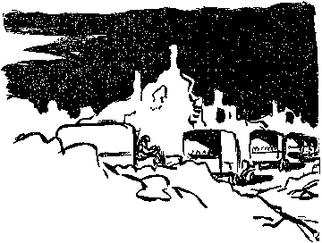 AROUND us the guns are constantly at it --- sometimes all at once in an attack, more often turn and turn about --- now here, now there, the short, sharp bark of the "75," with the wicked, tearing swish and snarl of the shell hurtling off overhead, soon lost to hearing; the lively boom and deeper note of the medium-sized weapons; the deep crash of the big chaps followed by the roar as of a heavy express train entering a railway cut as the shell tears off into the far, high places above; every now and then some big gun, more distant, emits a sort of mellow, musical note, and the projectile eases off on its errand, calmly and quietly, with an accent of confidence. This is singularly emphasized in the case of the big shells passing overhead from so far behind that the boom of the gun is lost --- we merely hear an unhurried, dispassionate whisper overhead, "I'm not saying much, I'm not worrying, I'm not hurrying, but I'm on my way --- just wait and --- " He passes on with all the airs of manifest destiny, and all is quiet till away in front rises a great ragged sheet of smoke and flame, and a few seconds later the heavy, sullen "G-r-r-r-oomp!" that shows that part of its self-confidence, at any rate, was well-founded. More often, though, the shelling does not appear to be on the lines, but on the roads and villages behind, through which the supply trains and troop reliefs must pass.