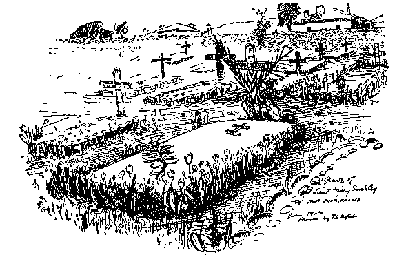 MOST of the other boys arrived to-day, We pitched one tent over an old Turkish burial-ground. The headstones have disappeared, but the turf is good. Sunken places show where the graves are. I carried two wounded Frenchmen from Biklista to Bresnica.