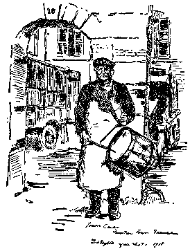 AFTER supper, Bundy, Liddell, and I went up to see the communiqué posted outside the mairie. Returning, we stopped to talk with an old gentleman and his wife who were leaning through their parlor window that opened on the sidewalk. They were the most genuine, patriotic, lovable, kindly ---except when they spoke of the Boches --- and hospitable people I have ever known. In honor of the occasion, a new bottle of some mild liqueur was opened, and when we finally forced ourselves to leave, the old gentleman called us "mes enfants."