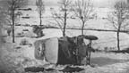 SNOW! We woke to a world absolutely transformed. Snow on the little huts, on the trees, glistening on the ground, and the air crisp and tingling. On account of the danger of aeroplanes taking pictures of tracks in the snow, we had to cross the open places on a single path, and, in the big level place in front, the cars have to use one track only.