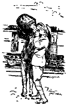 In its course it served many ends. By a bend the water flowed swift and deep among the reeds to form a swimming-hole; luscious its cooling after the welter of the roads, sweet its mystery under a golden moon after a day when earth itself seemed to pant a little at the warmth. Broadening a mite, the stream gave place for watering of tired army horses, a grateful interrupting of the dragging haul of ammunition and supplies. Then came the reach that never lacked for kneeling soldiers, scrubbing and rinsing their weird clothing --- immensely long-tailed shirts; stomach-winding cloths of vivid hue; long, baggy, gay-colored caleçons, string-tied at the bottom. Or here they bathed their heads and hands, raising tanned, cheery faces to sputter us a greeting through the suds. Stumpy trees, knee-deep in the water, acted as dressing-tables with bits of mirror stuck there to aid the luxuries of the toilet. The current seemed to pause here in friendliness before it gushed over the dam and opened into a washing-place for horses, carts, and ambulances.