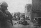 A poilu came running in to say that his three comrades were killed about one hundred fifty yards down the road. The Médecin Lieutenant is down here now, and the man whose comrades were killed, sits shaking on the steps of the abri.