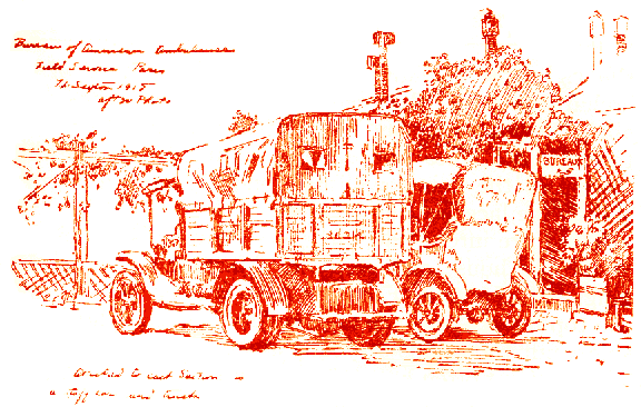 For those --- and there are many of us --- who came into close contact with the Parc, there are remembrances which go deeper than the nine hundred and eighty cars put together there or than the many thousands of dollars' worth of spare parts issued. What original member of Section Eight will ever forget those days at the newly established Parc where he worked as a carpenter, mechanic, and painter! --- A good training for the work that was ahead. How many of those who volunteered to help in the equipping of cars there will forget how the French Army insists that tires must be numbered and recorded accurately! Some of them were section leaders later, and perhaps the training helped them. What section leader and mechanic has not felt the Parc was an intimate part of his daily work, looking on it either as a friend or as an enemy, depending on the way his cars were running that day! The Parc stood for him as something to be telegraphed to or telegraphed at, always something upon which he knew the success of his section depended.