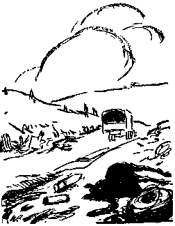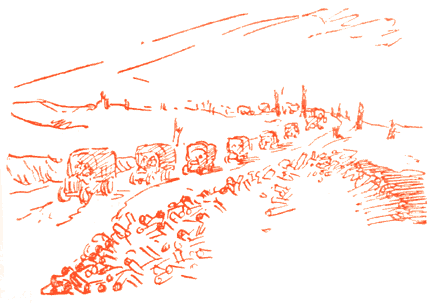 The roads have been packed with every description of traffic. All around and in between convoys, the continual road-mending goes on. There is just one criticism that we can't help but make all the time: we don't see the sense in having thousands and thousands of men doing nothing but break stones, using little iron mallets with long, supple handles, when there are such things as portable rock-crushers --- at least there are in America.