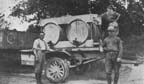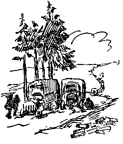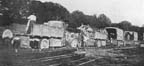 Jouaignes was a typical French town, all the houses being built along one main street. The Groupe Genin camped in barracks on the north side of the town, while the Groupes Erhardt and Meyer lived in remorques (or trailers) placed in the fields just south. Life in camp, which was not of the most exciting nature, consisted of the greasing and cleaning of trucks, baseball and what other outdoor sports could be organized quickly, and at night a promenade down the street, stopping at Madame "Tabac's" or any other poste de secours where all the seats or benches were not taken. Drinking-water had to be brought several kilometres, and was very scarce, so that by evening there was a terrible thirst to be quenched.